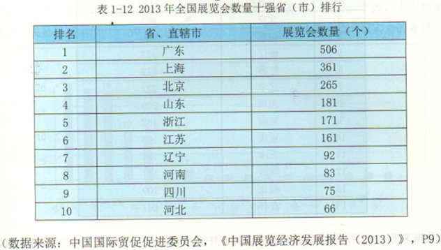 (數(shù)據(jù)來源:中國國際貿(mào)促促進(jìn)委員會,《中國展覽經(jīng)濟(jì)發(fā)展報(bào)告(2013)》,P11