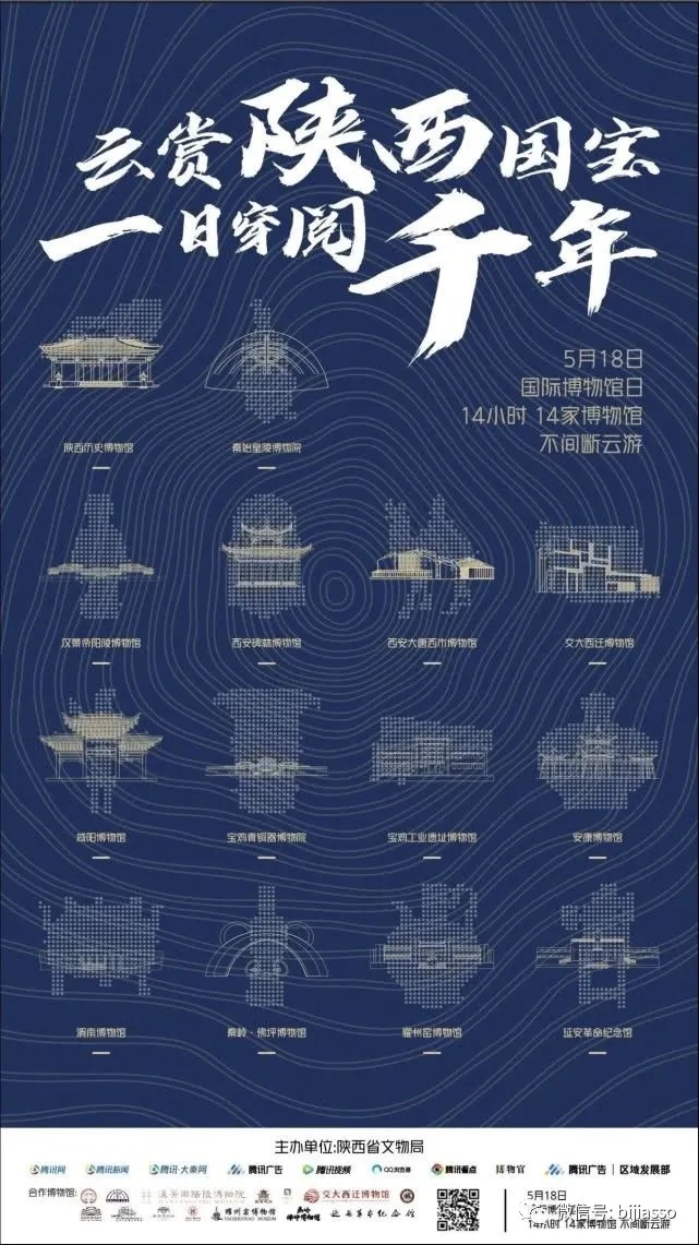 另外,陜西省文物局聯(lián)合騰訊大秦網(wǎng)、騰訊看點推出“云賞陜西國寶·一日穿閱千年”的云游活動,邀請14家陜西省最具代表性的博物館,在5月18日當天8點至22點“輪番上陣”,帶領(lǐng)網(wǎng)友一起穿越周、秦、漢、唐四個朝代,共賞陜西國寶(具體的云游時間表請關(guān)注“云賞陜西國寶·一日穿閱千年”活動)。