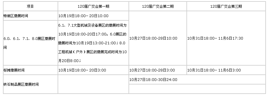 2016年廣交會(huì)時(shí)間表之撤展安排